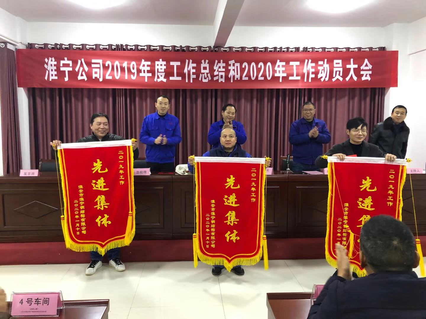 2020年1月10日,淮安市淮寧鋼結構有限公司在本公司辦公樓一樓會議室召開了2019年度工作總結和2020年工作動員大會,從車間到管理層共有150余人參加了會議。會上首先有總經理秦電文致新年賀詞,接著由董事長陳國寶先生代表公司作《2019年度工作總結和2020年工作動員報告》,他實事求是地總結了過去一年的工作,對存在的問題進行深入淺出地分析,并提出了新的一年的發展思路和年產鋼結構3萬噸、實現銷售收入1億元、利稅2000萬元的奮斗目標及5個方面的重點工作措施。會上還采取無記名投票方式差額選舉產生3個先進集體和24名優秀員工,并對獲得“先進集體”和“優秀員工”稱號的車間、部門、員工進行了表彰和獎勵,先進集體,優秀員工代表作表態發言,整個會議歷時兩小時三十分鐘,會議全過程始終洋溢著振奮、熱烈、愉快的氣氛。會議結束后,全體參會員工參加了公司舉辦的晚宴。
