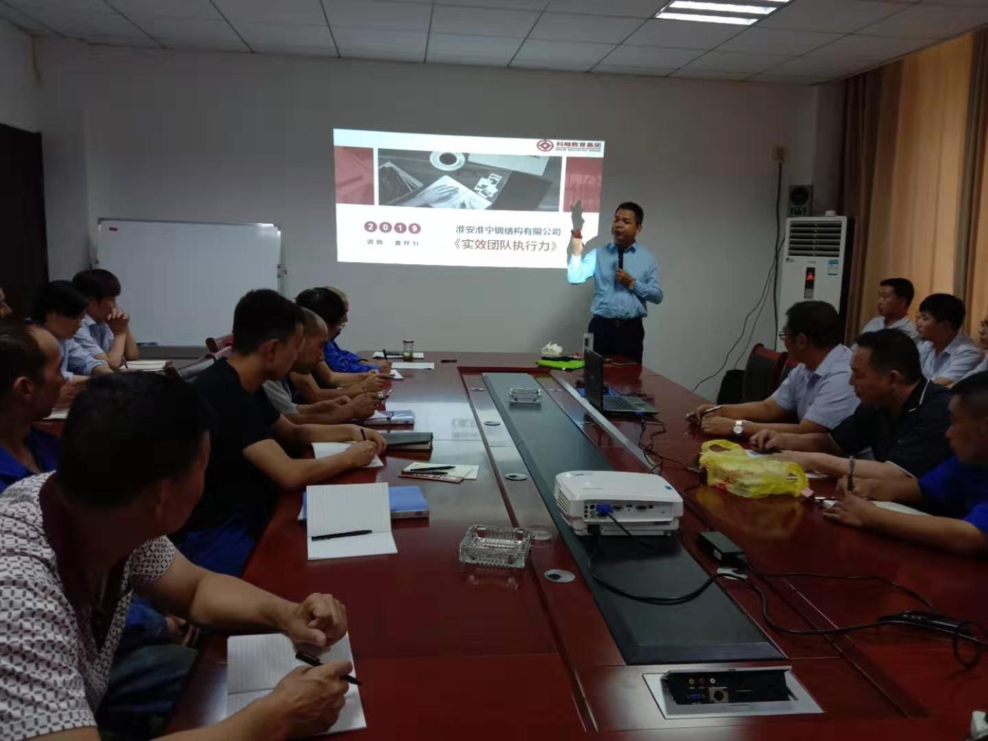 為不斷提升公司全體管理人員的管理創(chuàng)新能力、技術創(chuàng)新能力、市場開拓能力,努力打造一支具有較強經(jīng)營管理水平的人才隊伍,2019年8月15日淮寧鋼結構有限公司在公司第二會議室舉辦了以提高執(zhí)行力為重點的企業(yè)管理知識培訓班。
